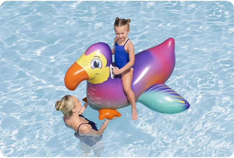 De Bestway opblaasbare tukan is een speelse en veilige metgezel voor waterpret voor kinderen vanaf 3 jaar. Dankzij het grote lichaam en de uitgebalanceerde vorm is hij uitzonderlijk stabiel, terwijl de stevige handgrepen comfortabel opstappen en vasthouden tijdens het spelen mogelijk maken. Het kleurrijke design met opvallende snavel trekt gegarandeerd de aandacht op elke zomervakantie.