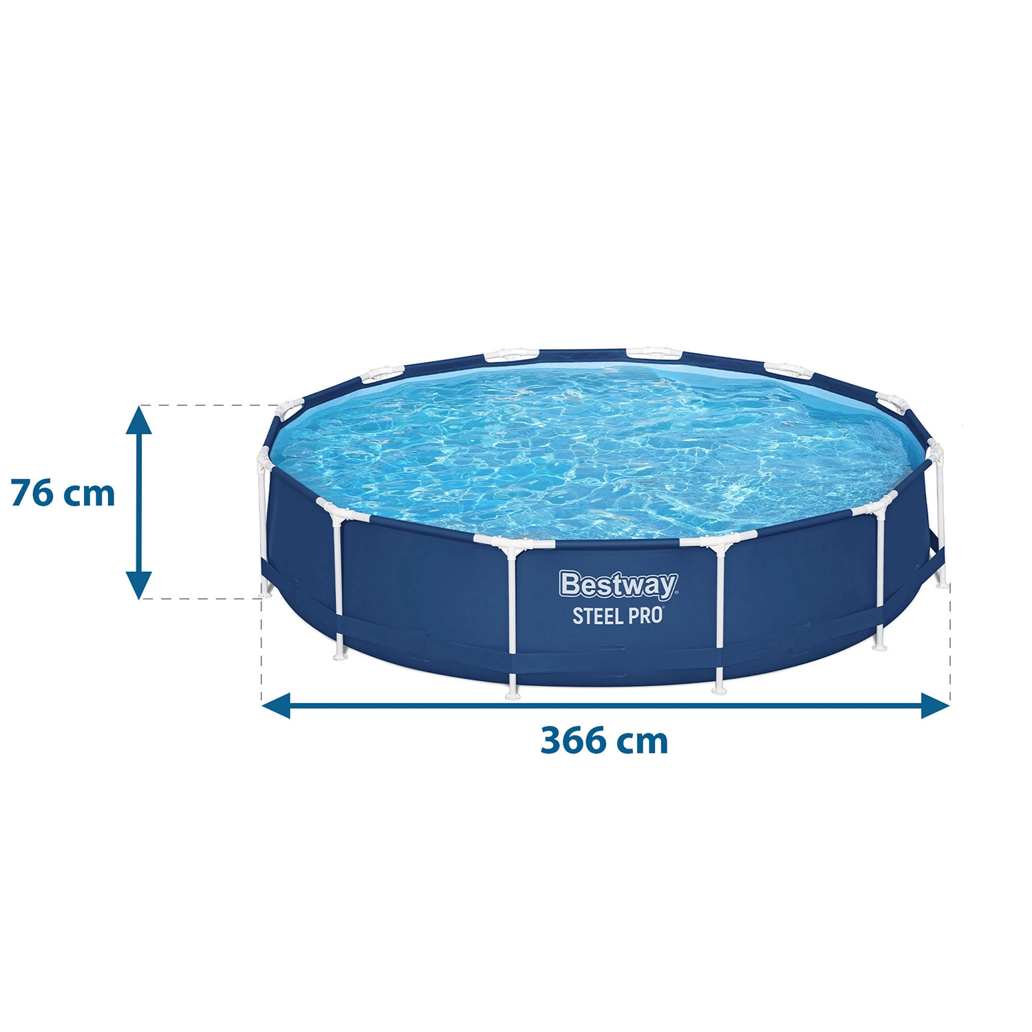 Dit ronde bovengrondse zwembad BESTWAY Steel Pro is een ideale keuze voor in de tuin of bij het zomerhuis. Het stevige stalen frame met anticorrosiebehandeling en de duurzame drie-laagse folie met nylonversteviging bieden een lange levensduur en stabiliteit. Dankzij de aanbevolen vulling van 90% bevat het zwembad tot 6.473 l water – voldoende ruimte voor verfrissing en gezinsplezier.