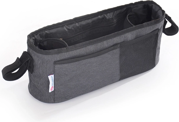Praktische kinderwagenorganizer met verstelbare riemen en klittenband houdt alle benodigdheden overzichtelijk binnen handbereik. Biedt een ruim interieur met twee bekerhouders, een grote centrale vak en twee voorvakken. Dankzij de universele bevestiging geschikt voor de meeste kinderwagens en heeft een maximale draagkracht van 2 kg.