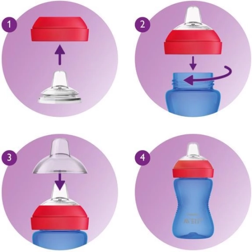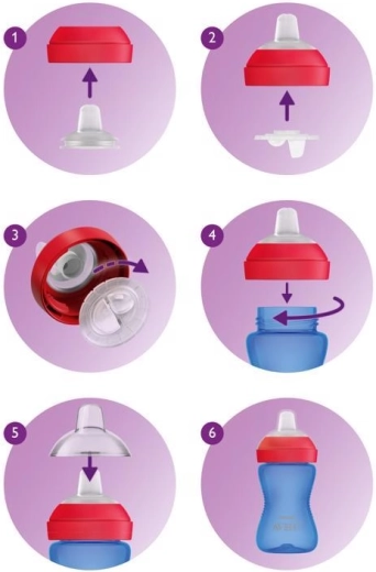 De praktische hygiënische dop houdt de tuit schoon, thuis en onderweg. Alle onderdelen zijn eenvoudig te demonteren en vaatwasmachinebestendig. De beker is gemaakt van veilig materiaal zonder BPA (0% BPA) en is compatibel met Philips Avent Classic- en Natural-flessen (behalve glazen flessen).