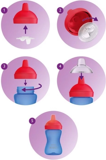 De schuine, harde tuit met een effectief ventiel zorgt voor een gelijkmatige drinkstroom en minder rommel – door moeders bevestigd: lekt niet.