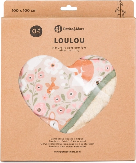 Bamboe badcape met capuchon PETITE&MARS Loulou Rosy Wilderness 100 × 100 cm