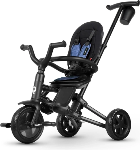 Qplay Nova Niello Blue past zich aan zes ontwikkelingsfasen aan – van een duwdriewieler met ouderbesturing tot een zelfstandige driewieler. De ideale keuze voor actieve gezinnen die op zoek zijn naar stabiliteit, comfort en een lange levensduur.
