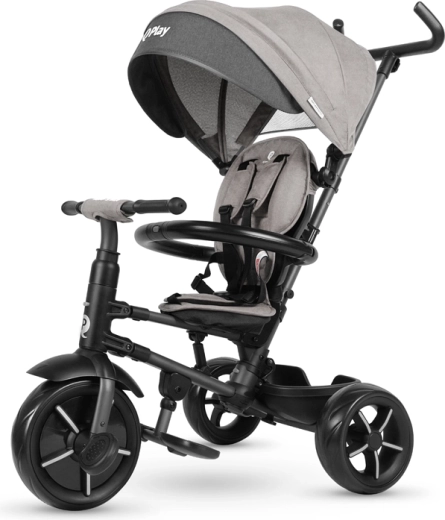Geniet van comfortabele en veilige ritjes met de driewieler Qplay Rito Star in elegante grijs. Biedt een inklapbaar frame zonder gereedschap, ouderbesturing met in hoogte verstelbare duwstang, een zonnekap met UV-bescherming UPF 50+ en 5-puntsgordels voor maximale veiligheid. Dankzij de vrijloop van de pedalen, de afneembare veiligheidsbeugel en de antivibratiewielen groeit hij met het kind mee van 10 tot 72 maanden.
