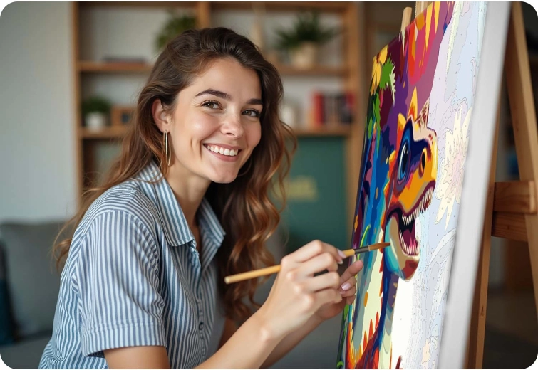 - Eenvoudig in 3 stappen: koppel het nummer aan de verf – schilder de gemarkeerde zones – bewonder het eindresultaat.