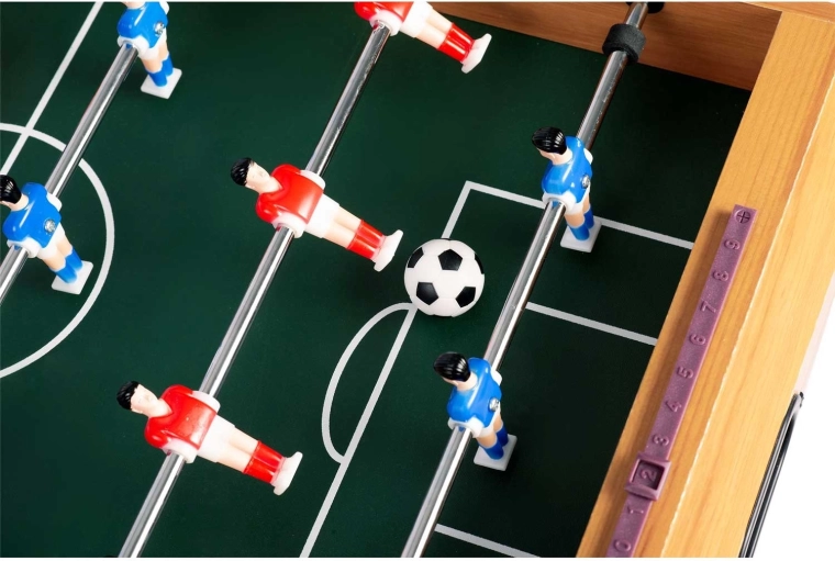 Een stevig frame en robuuste poten zorgen voor stabiliteit, zelfs bij intensieve duels. Het spel verloopt soepel en veilig dankzij de rubberen einddoppen op de stangen.