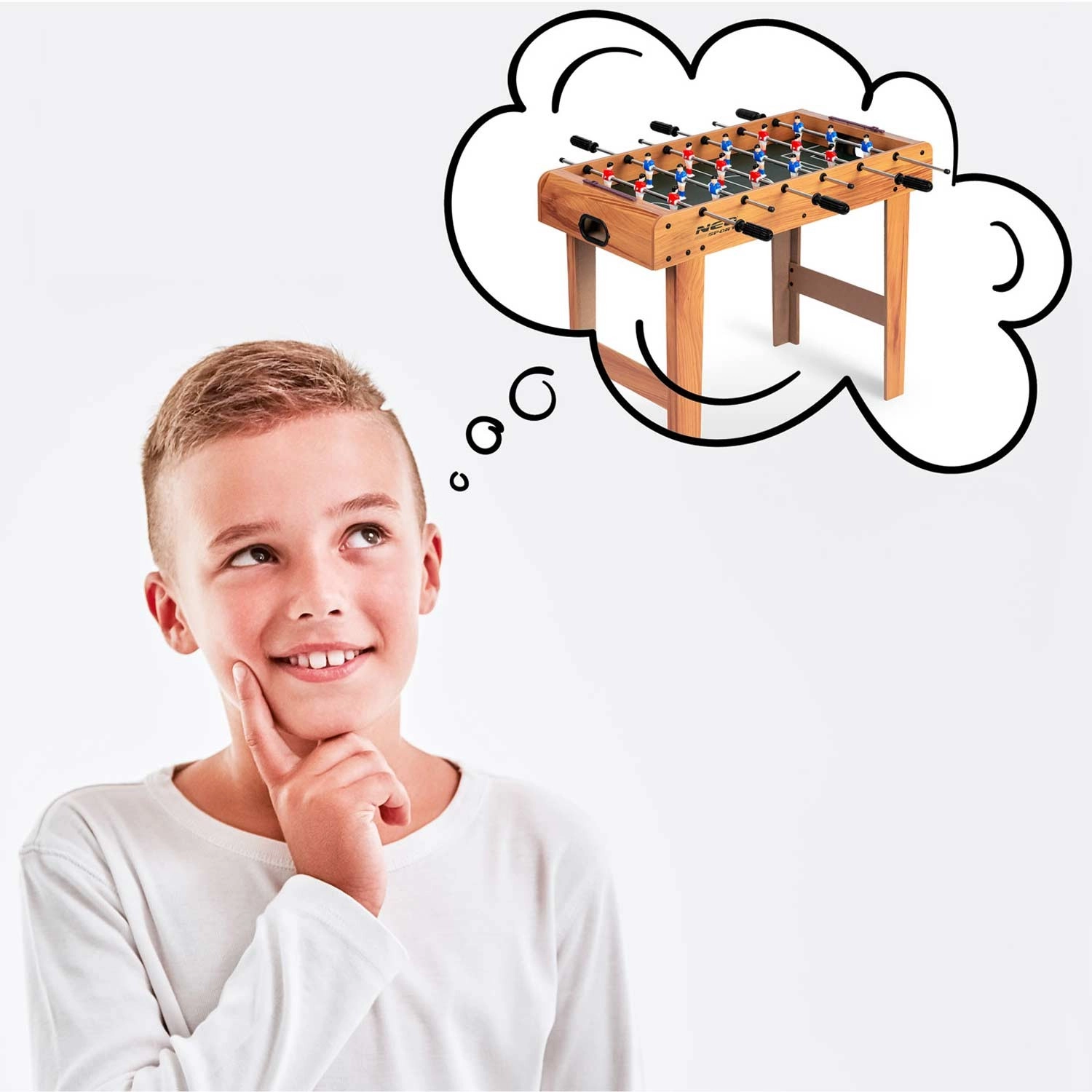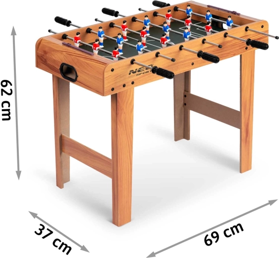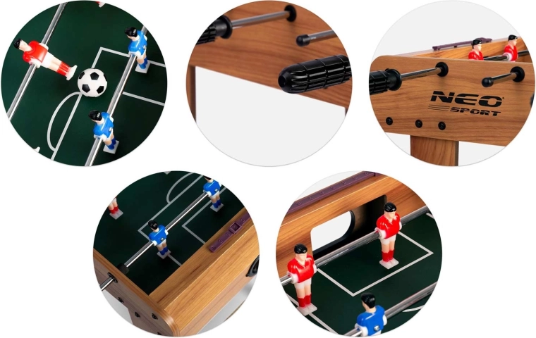 Geniet op elk moment en overal van tijdloos plezier. De houten NEO SPORT tafelvoetbal in compacte afmetingen past in de meeste interieurs en biedt dankzij de stabiele constructie een vloeiende en dynamische gameplay. Perfect uitgebalanceerde ballen, een zekere grip en soepel glijdende geleidestangen garanderen precisie en balcontrole in zowel aanval als verdediging.