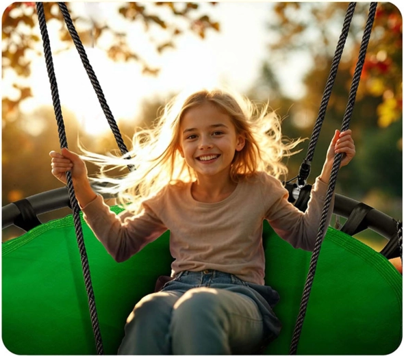 Dankzij de verstelbare touwen pas je de hoogte eenvoudig aan op leeftijd en lengte van het kind. Stevige polyester koorden zorgen voor stabiliteit en een soepele, vloeiende beweging. Installatie gaat snel en het onderhoud is minimaal – een ideale keuze voor langdurig en veilig gebruik in de buitenlucht.