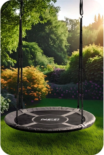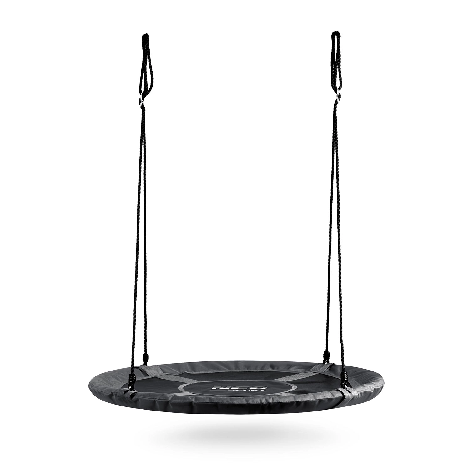 De NEO-SPORT Swingo nestschommel van 110 cm is ideaal voor in de tuin of op de binnenplaats. De brede en comfortabele zitting van duurzame, waterbestendige Oxford 600D-stof is makkelijk schoon te houden en voelt prettig aan. De stalen constructie met zachte PE-schuimlaag en de stevige gevlochten touwen bieden stabiliteit en veiligheid voor zowel kinderen als volwassenen.