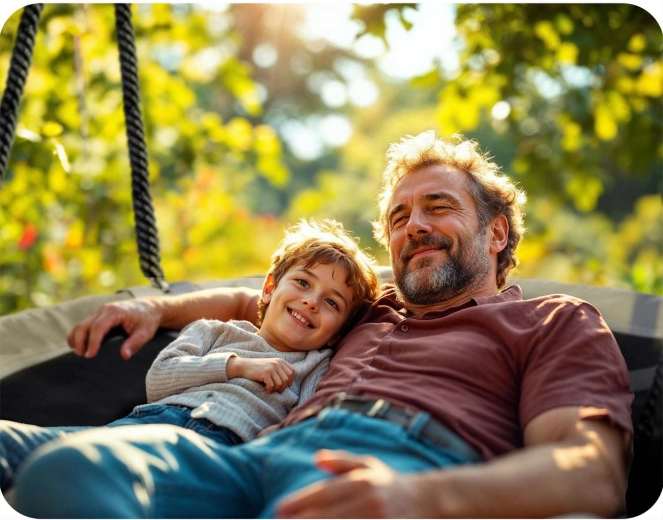 Dankzij de traploze hoogteverstelling pas je de schommel eenvoudig aan de leeftijd en lengte van het kind aan – zo groeit hij mee. Het maximale draagvermogen van 150 kg maakt samen schommelen en ontspannen met z’n tweeën mogelijk.