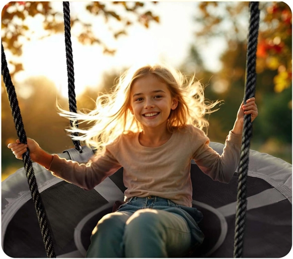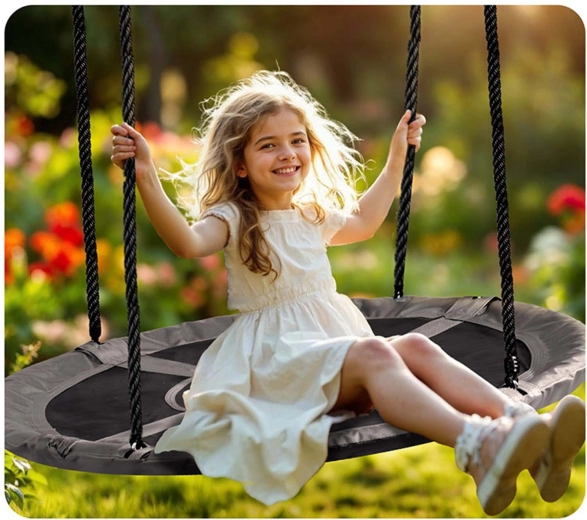 De brede, ronde diameter biedt zowel kinderen als volwassenen voldoende ruimte om te zitten of liggen. Ideaal om te schommelen, te ontspannen en samen plezier te maken.