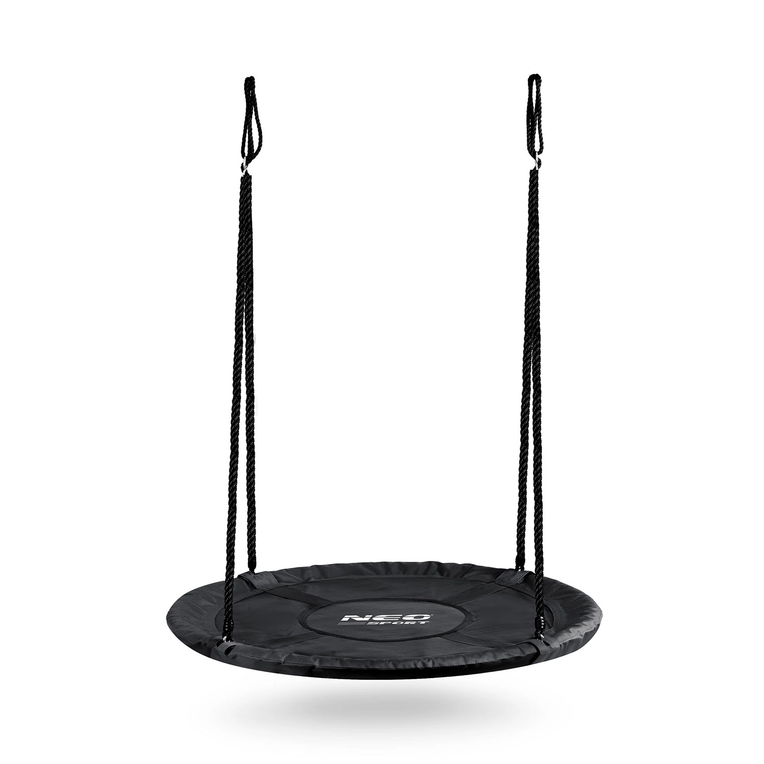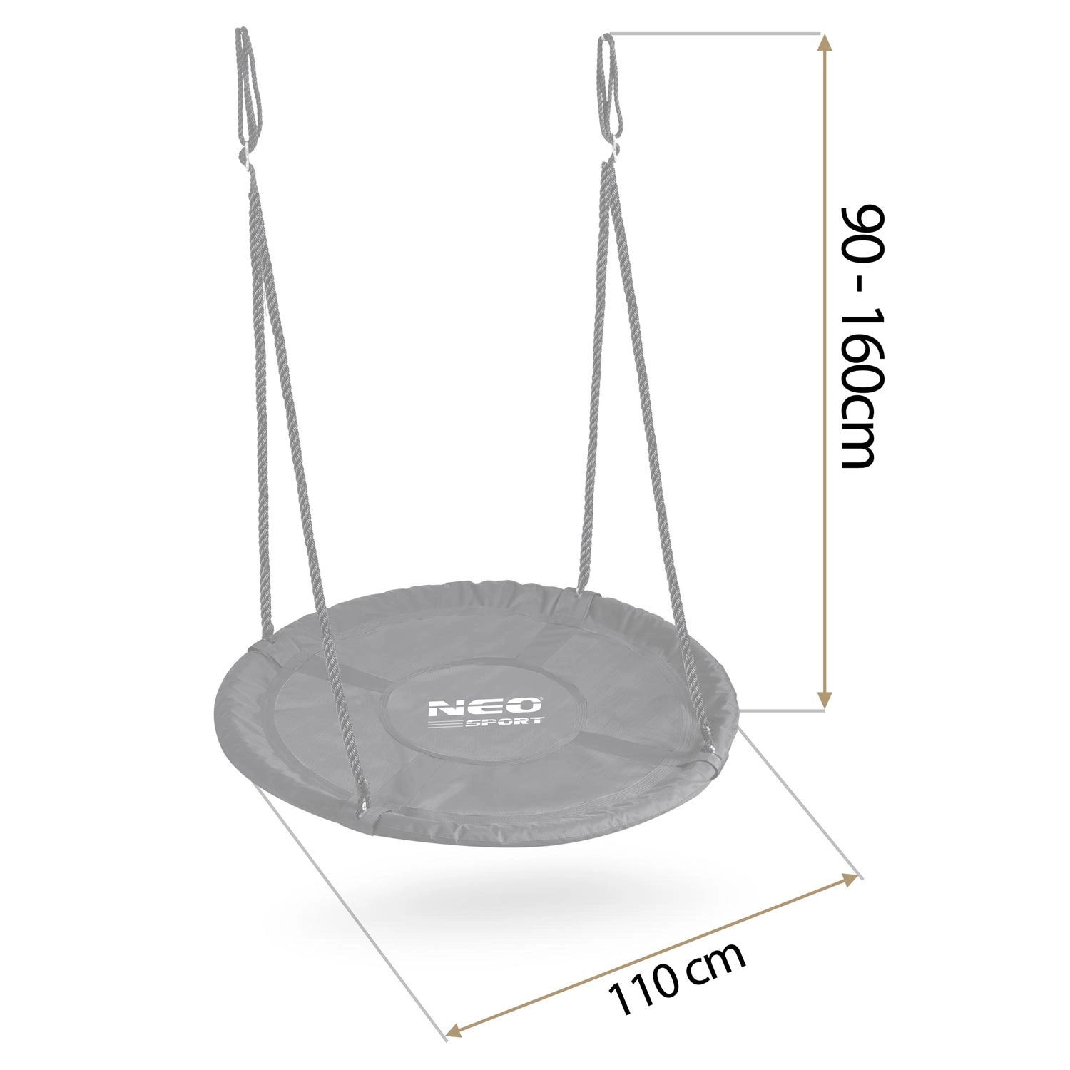 De ronde NEO-SPORT schommel met een diameter van 110 cm is een ideale keuze voor gezinnen die actieve ontspanning met veilige fun willen combineren. Het robuuste stalen frame met zachte PE-schuimbekleding en meervoudige stiksels biedt stabiliteit en een lange levensduur, terwijl de zitting van duurzaam Oxford 600D-polyester waterafstotend en makkelijk te reinigen is.