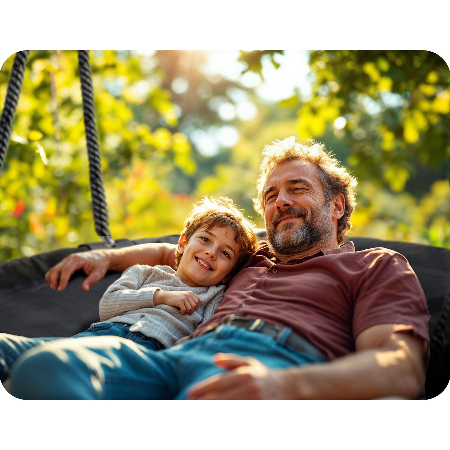 Dankzij de verstelbare ophangtouwen met een maximale lengte van 160 cm pas je de schommelhoogte eenvoudig aan de lengte van het kind en de ophanglocatie aan. Het brede zitvlak is comfortabel om te zitten én liggen, zodat zowel jongere als oudere kinderen – en zelfs volwassenen – kunnen genieten van het schommelen.