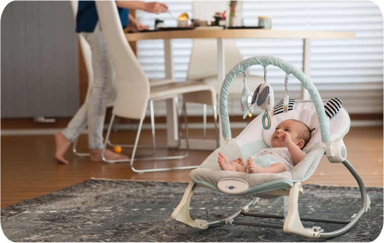 Het metalen frame, antislipvoetjes en 3-puntsgordels houden je baby in de juiste positie. Vergrendeling van het schommelen zorgt voor stabiel zitten.