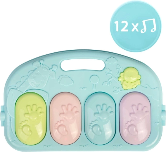 Kleurige toetsen reageren op aanraken en schoppen, lichten op en spelen 12 melodieën af. De piano kan uit de mat worden gehaald en los gebruikt worden of als muziektafeltje.
