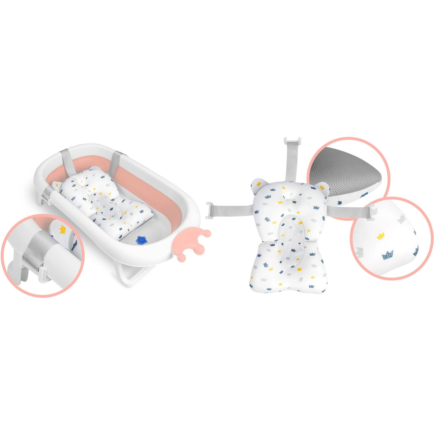 Dit opvouwbare babybadje in wit-roze uitvoering is ontworpen voor comfortabel en veilig badderen vanaf de eerste levensdagen. Dankzij de stabiele uitklapbare poten en antislip-elementen klapt het tijdens het baden niet in en blijft het stevig op zijn plaats. De slimme stop in stervorm waarschuwt door van kleur te veranderen zodra het water boven 38 °C komt, zodat u de temperatuur onder controle houdt.