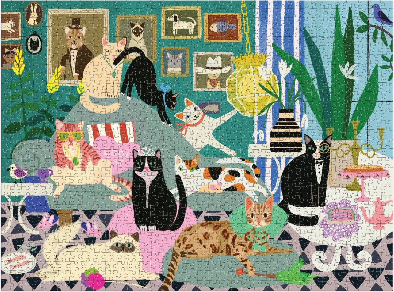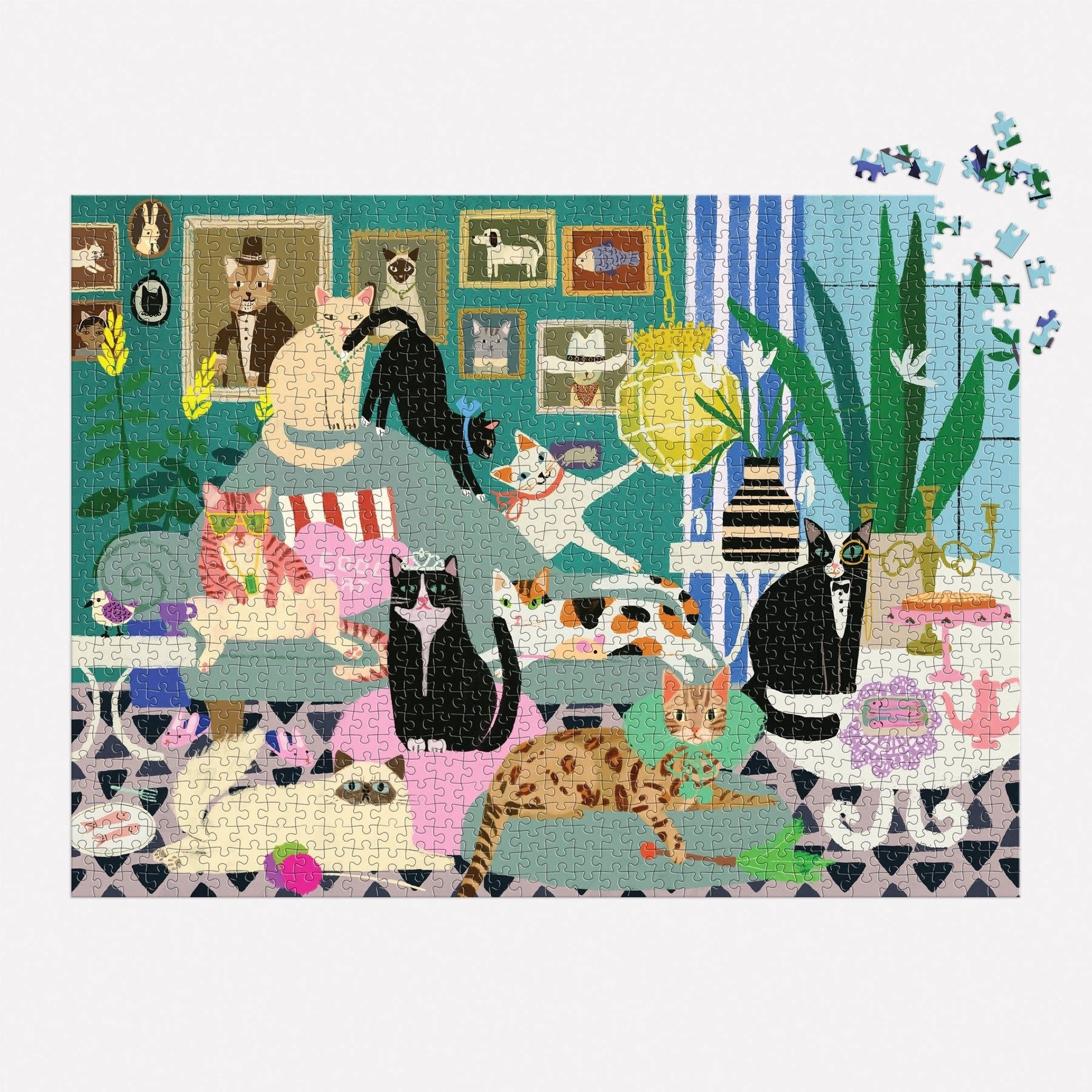 Ontdek het plezier van puzzelen met deze stijlvolle puzzel van 1000 stukjes met een motief van betoverende katten van het merk GALISON. Inclusief een voorbeeldposter van het motief voor makkelijker puzzelen. Na voltooiing ontstaat een afbeelding van 68,6 × 50,8 cm – ideaal om in te lijsten of neer te zetten.