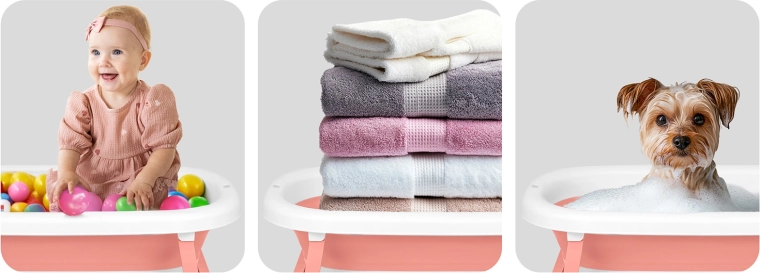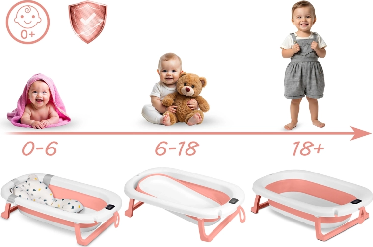 Het badje groeit mee met je kind: met inleg voor 0–6 maanden, zonder inleg en met stabiele pootjes voor 6–18 maanden, en daarna met voldoende ruimte voor nieuwsgierige peuters. Het opvouwbare design maakt opbergen en reizen makkelijk, hoogwaardige BPA‑vrije materialen zorgen voor hygiëne en veiligheid. Praktische details zoals een houder voor de douchekop, zijhandgrepen en de sneldrogende inleg maken van dit badje een dagelijkse hulp.