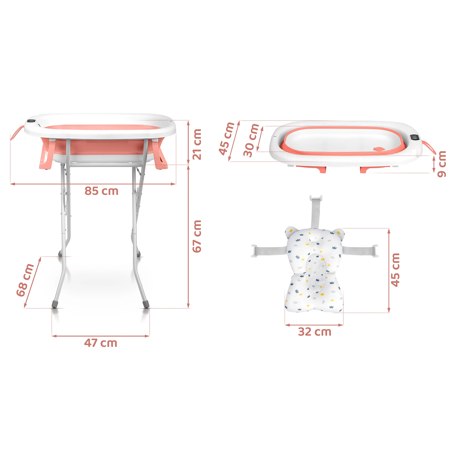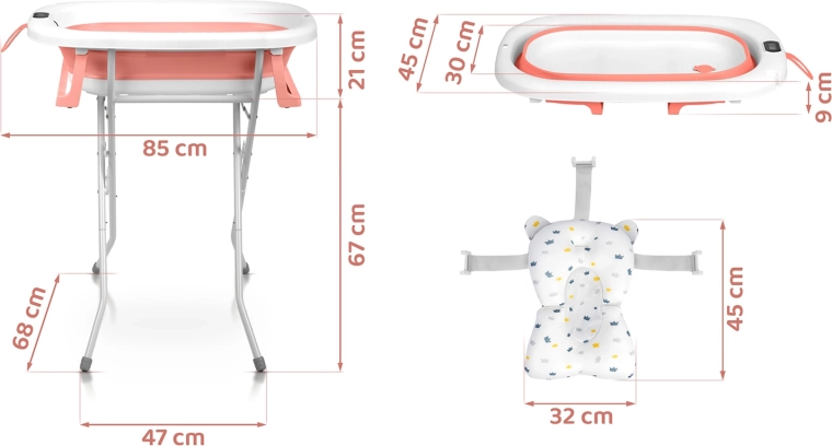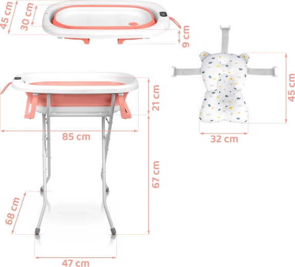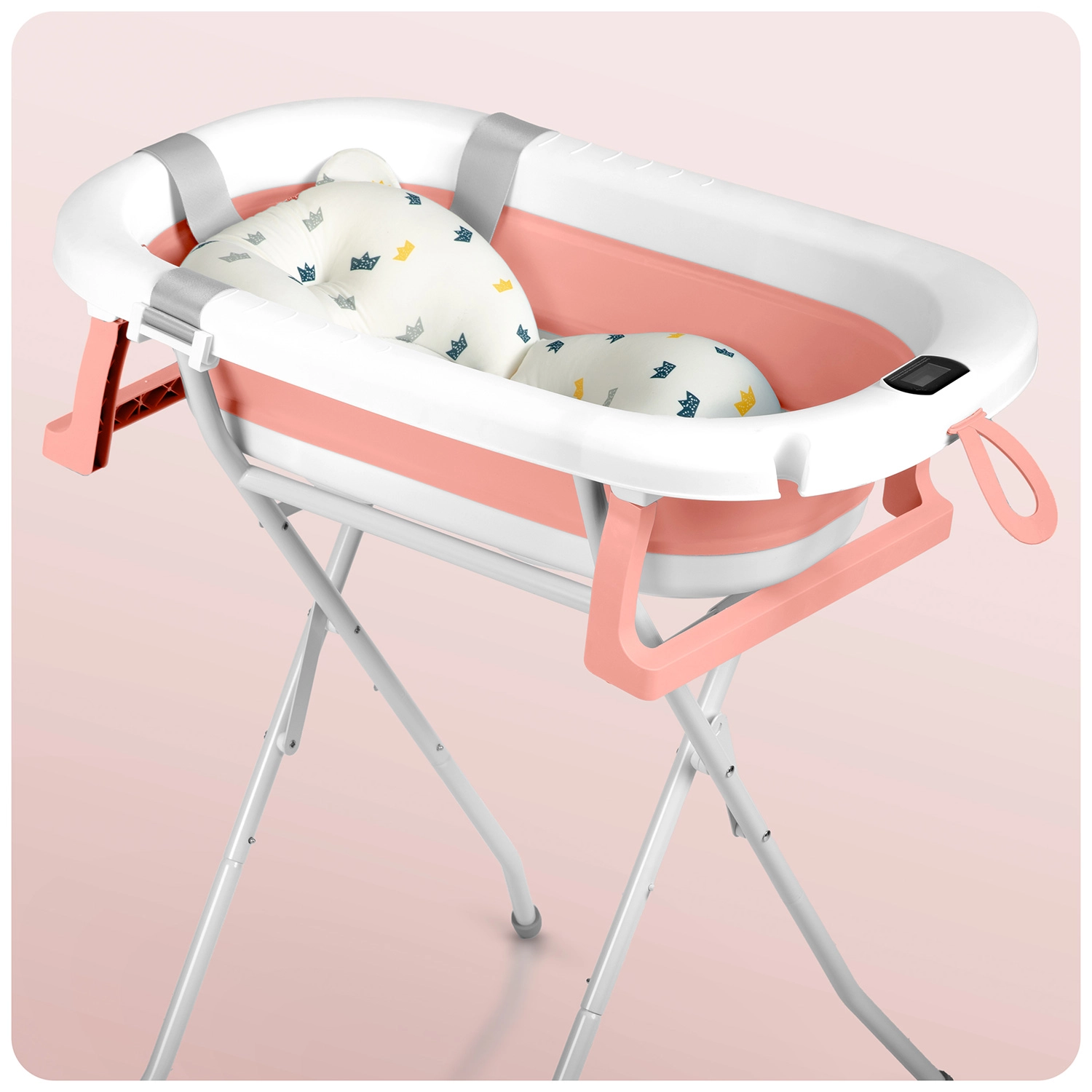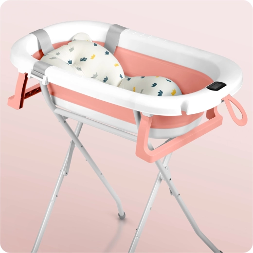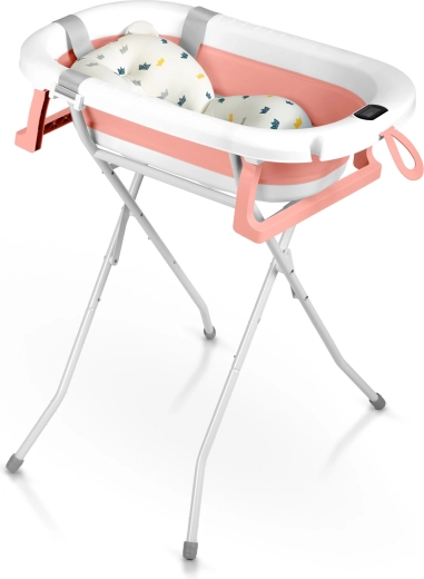 Opvouwbaar babybadje met standaard, thermometer en inleg RICOKIDS wit‑roze