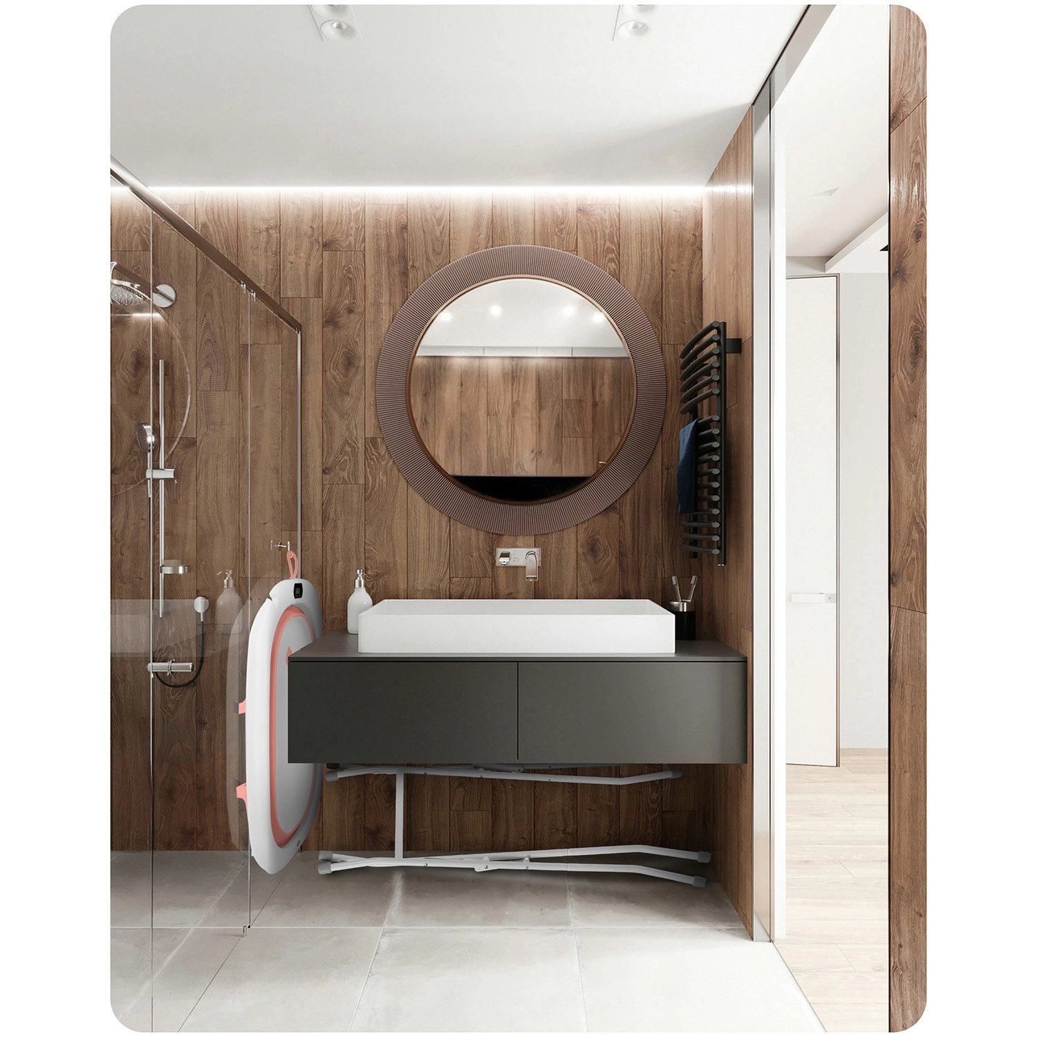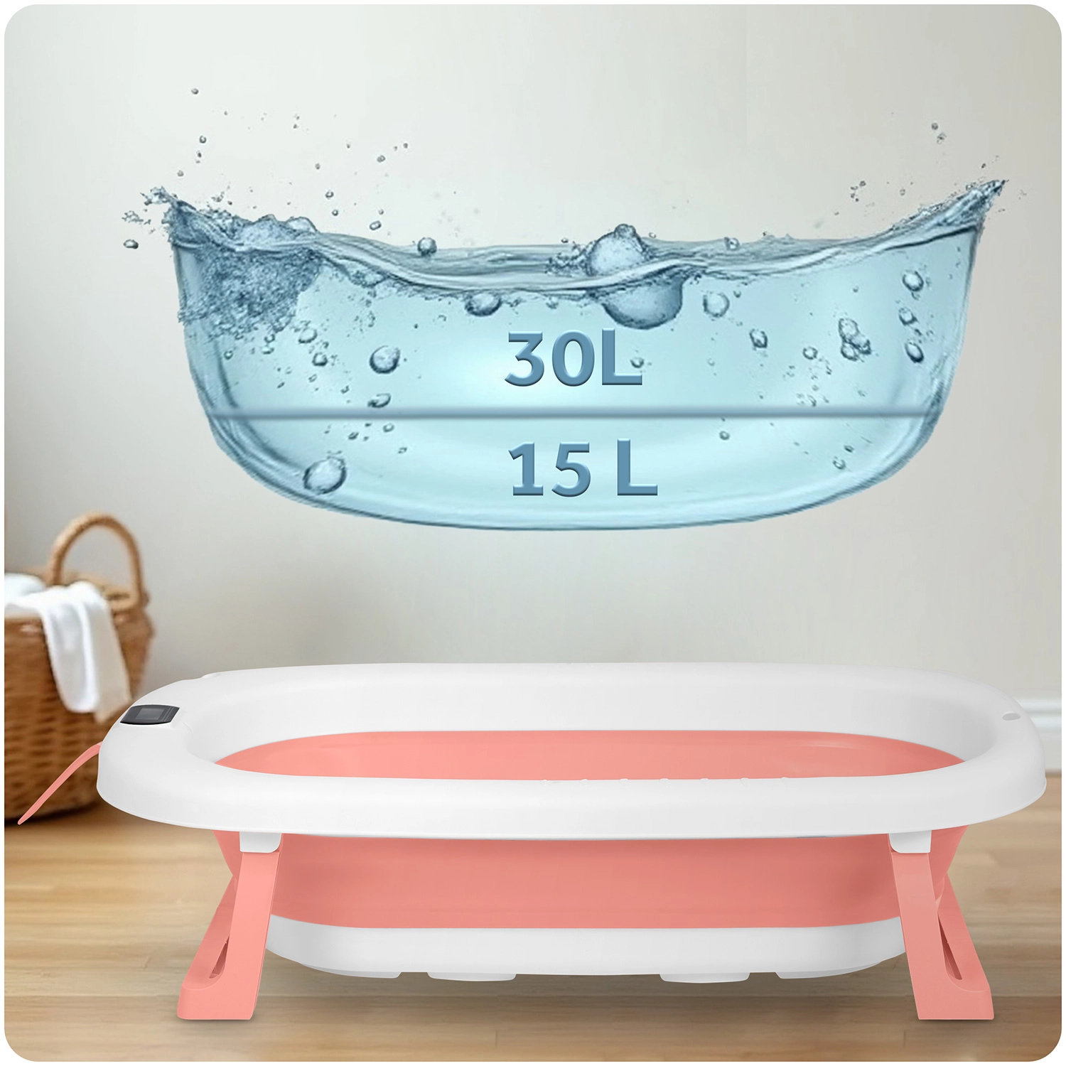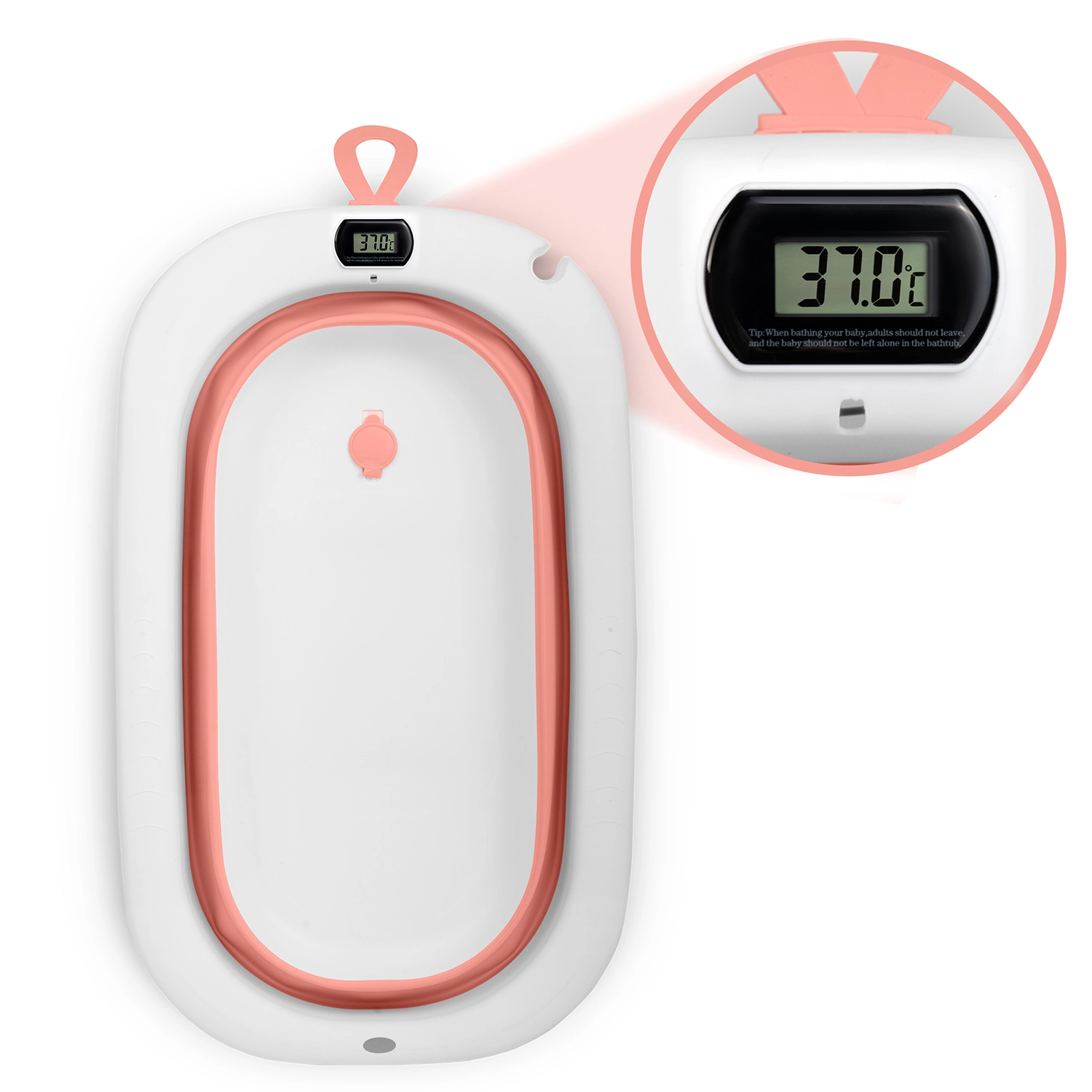 Opvouwbaar babybadje met standaard, thermometer en inleg RICOKIDS wit‑roze