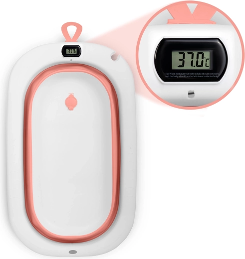 Praktisch babybadje RICOKIDS met stevige opvouwbare standaard, zachte inleg voor pasgeborenen en een elektronische thermometer voor comfortabel en veilig badderen vanaf de eerste dag. Dankzij de opvouwbare constructie, antislipvoetjes en kleurdop die boven 38 °C verkleurt heb je temperatuur en stabiliteit altijd onder controle. Het badje is licht, gemakkelijk te verplaatsen en voldoet aan de Europese veiligheidsnormen.