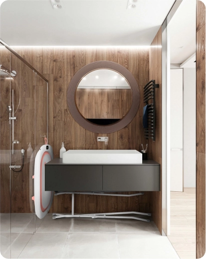 Geïntegreerde houder voor de douchekop voor comfortabel vullen