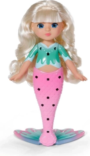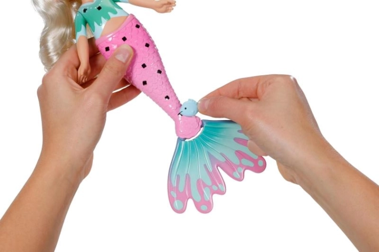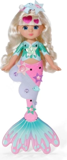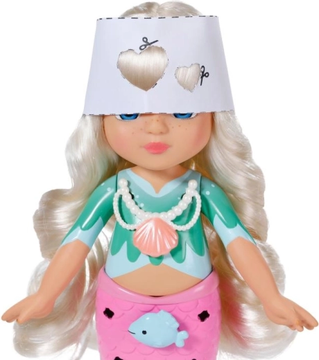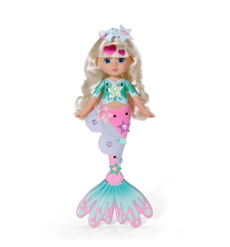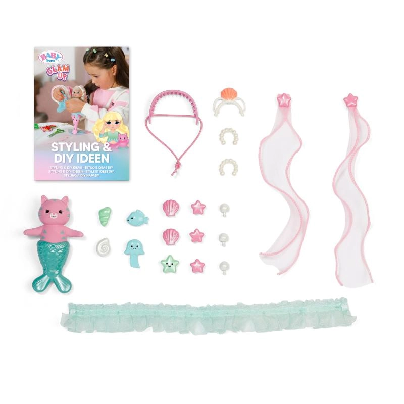 Ontdek de wereld van creëren met de pop BABY born Glam Up zeemeermin Sparkle, die dol is op veranderingen in look en kleur. Dankzij lang blond haar dat van kleur verandert in de zon, opklikbare versieringen, textiele accessoires en een schattig dierenvriendje creëren kinderen moeiteloos originele stijlen van top tot staartvin. Perfect voor creatief haren stylen, versieren en fantasierijk spel.