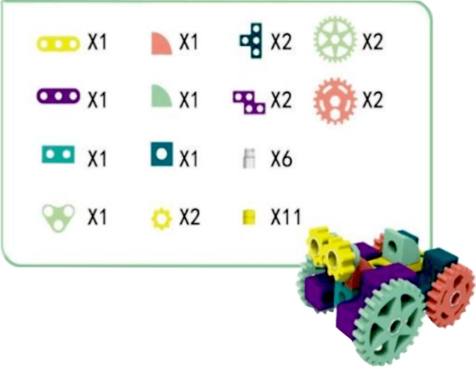 • Inspirerende handleiding – laat duidelijk zien hoe je 2 voertuigmodellen bouwt en motiveert tot eigen constructies.