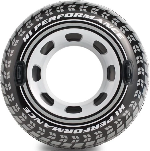 Stijlvolle opblaasbare band in autobandvorm biedt heerlijk waterplezier voor kinderen en volwassenen. Dankzij twee stevige handgrepen behoud je gemakkelijk je balans. Gemaakt van duurzaam PVC van het merk INTEX, met een diameter van 114 cm en een draagvermogen tot 100 kg.
