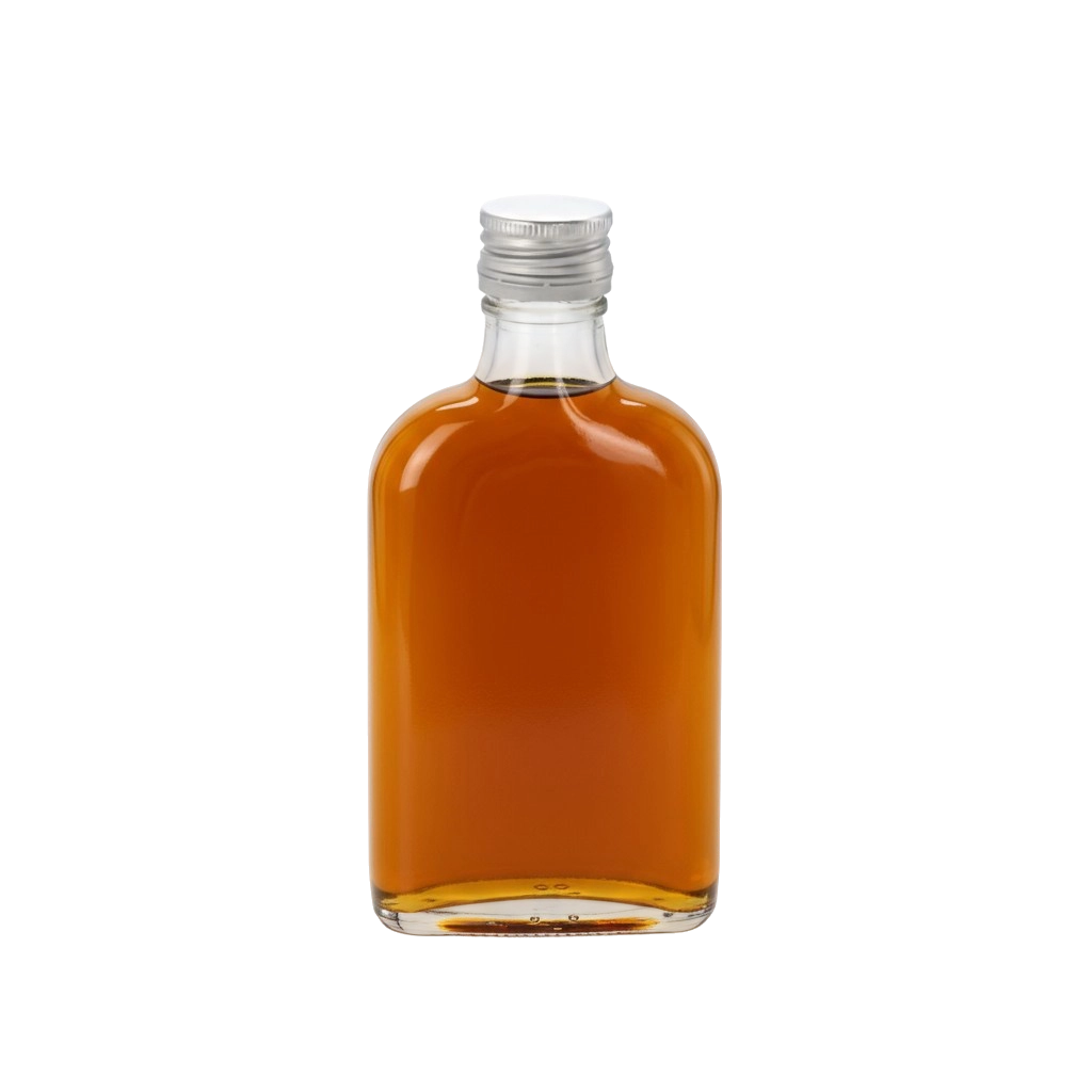 De compacte glazen fles met een inhoud van 200 ml is ideaal voor huisgemaakte likeuren, wijnen en distillaten. Dankzij de platte vorm past hij gemakkelijk in een zak of tas en het transparante glas geeft de drank een elegante uitstraling. Luchtdichte metalen schroefdop beschermt de inhoud, is verkrijgbaar in verschillende kleuren en de hoogwaardige afwerking garandeert duurzaamheid en hergebruik.