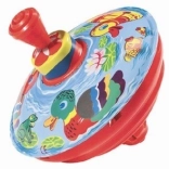 Een kleurrijke tol met een motief van eendjes in de vijver die kleine kinderen plezier geeft en hun vaardigheden stimuleert. Door simpelweg de hendel in te drukken gaat de tol draaien en maakt hij een typisch geluid. Het speelgoed ontwikkelt de fijne motoriek, coördinatie en voldoet aan de Europese veiligheidsnormen.