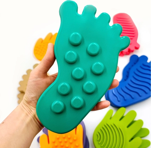 Elastische knobbels op de ballen en matjes geven kinderen een intense tactiele prikkel, verhogen de gevoeligheid van voetzolen en handpalmen en dragen bij aan ontspanning na een intensieve activiteit.