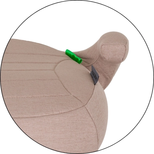 Dankzij het lichte en compacte design is de zitverhoger gemakkelijk te dragen en snel te installeren in verschillende auto’s. Verhoogde armleuningen helpen de gordel in de juiste positie te leiden, wat de veiligheid en stabiele zit ondersteunt. De moderne look in de tint tan brown past in de meeste interieurs.