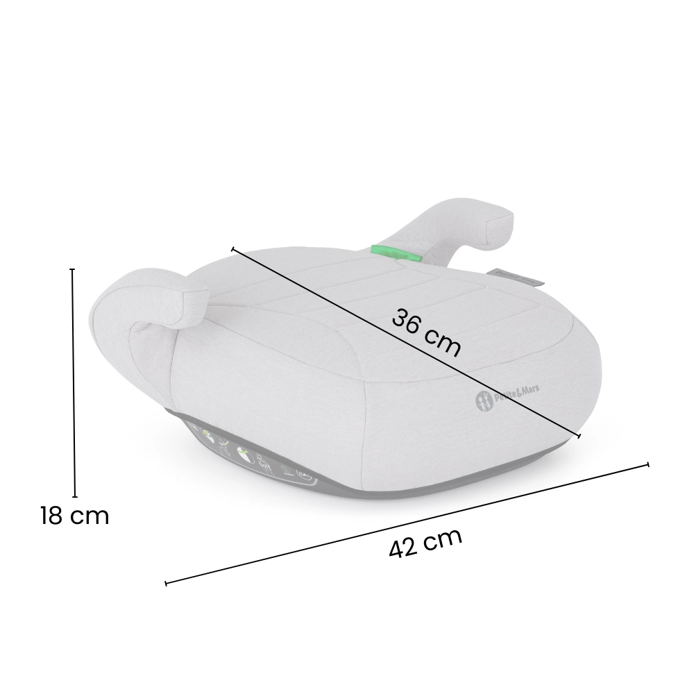 De Petite&Mars Zuno zitverhoger is de ideale keuze voor oudere kinderen die geen rugleuning meer nodig hebben, maar nog wel correcte geleiding van de autogordel. De voorwaarts gerichte installatie en het gebruik met de 3-puntsgordel van het voertuig zorgen voor een veilige zithouding, terwijl de zachte bekleding en doordachte vormgeving het reiscomfort verhogen.