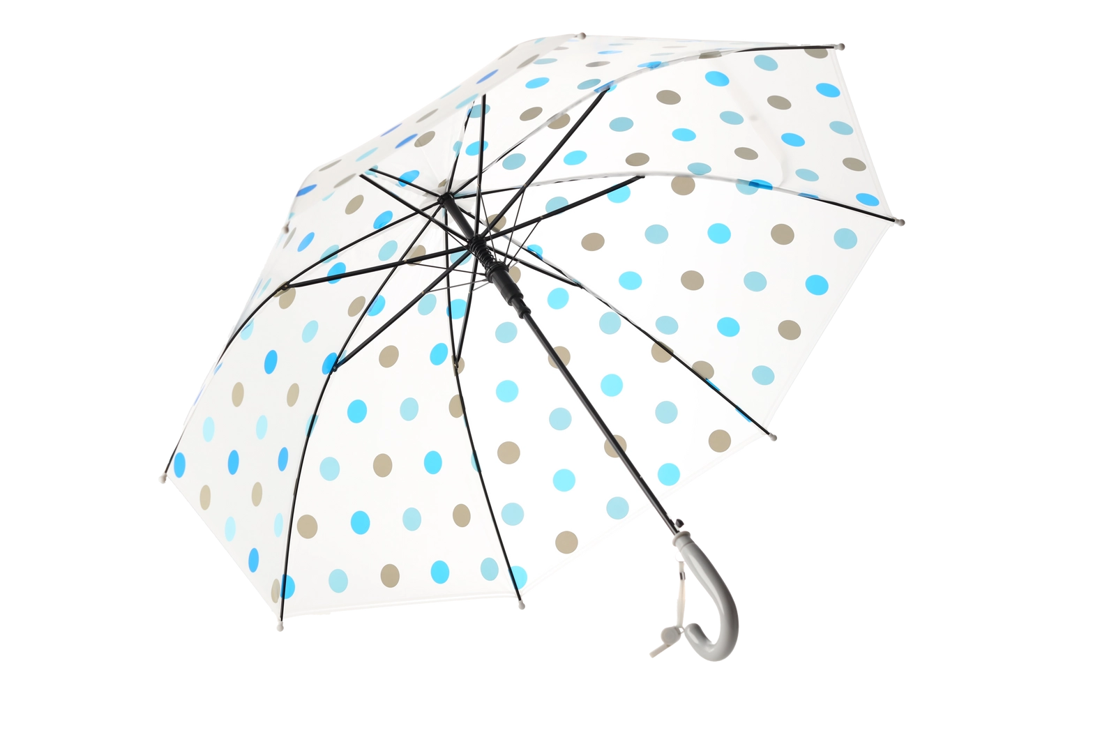 Geniet van betrouwbare bescherming tegen de regen met een paraplu in een populair stippenmotief. Het halfautomatische mechanisme zorgt voor snel en soepel openen, terwijl de lichte constructie en de gebogen handgreep comfortabel vasthouden garanderen, ook bij langer gebruik.