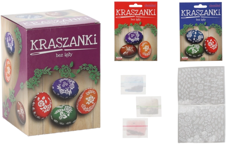 Maak thuis eenvoudig traditionele paaseieren zonder naalden. Deze set bevat 3 eetbare kleurstoffen in poedervorm en stickers met bloemmotieven in folkloristische stijl. De kleuren komen in twee mixen (bijv. groen, blauw, rood of bruin, paars, oranje) en de variant wordt willekeurig verzonden. Eenvoudig in gebruik met intense tinten en creatief versieren voor het hele gezin.