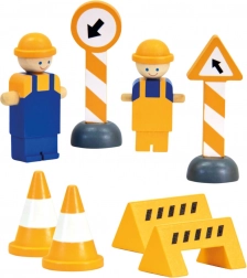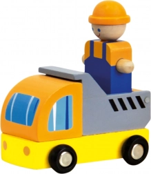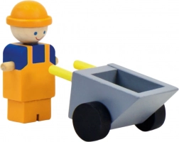 Set met een houten kraan die met zijn heldere kleuren de aandacht trekt van enthousiaste kleine bouwers. De lading kan op verschillende manieren worden gemanipuleerd, de kraan draait om zijn as en trekt zo elk nieuwsgierig kind aan. De verpakking bevat ook een vrachtwagentje en figuren van bouwvakkers met hun gereedschap. Het speelgoed is robuust, gemaakt van sterk multiplex en massief hout.   Belangrijkste eigenschappen:kraan met pallet en 2 blokken vracht, autootje, karretje, 2 figuren, 2 barrières, 2 kegels, 2 bordenbrede manipuliatiemogelijkhedenrobuuste houten uitvoering