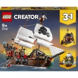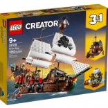 LEGO Creator 3-in-1 Piratenschip biedt kinderen de mogelijkheid om drie verschillende speelgoedmodellen te bouwen. Je kunt een piratenschip bouwen, het ombouwen tot een piratenherberg of tot het griezelige Schedeleiland. Bovendien kunnen kinderen hun fantasie de vrije loop laten en iets geheel nieuws creëren!