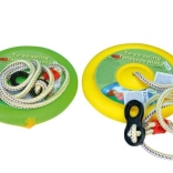 De set bevat een comfortabele zitting, een sterk touw (ca. 175 cm) en een ophangelement – de montage is snel en eenvoudig. De aanbevolen ophanghoogte van de zitting is 35–59 cm boven de grond. Het product is gemaakt van licht en duurzaam kunststof, voldoet aan CE en EN 71 en is bedoeld voor kinderen vanaf 3 jaar. Gebruik altijd onder toezicht van een volwassene.