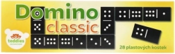 Ontdek tijdloos speelplezier met klassiek domino in een kwalitatieve kunststof uitvoering. De set bevat 28 stenen met duidelijk leesbare stippen voor eenvoudig leggen en een overzichtelijk spel. Het compacte doosje maakt het mogelijk om domino overal mee naartoe te nemen – op vakantie, naar de grootouders of onderweg.