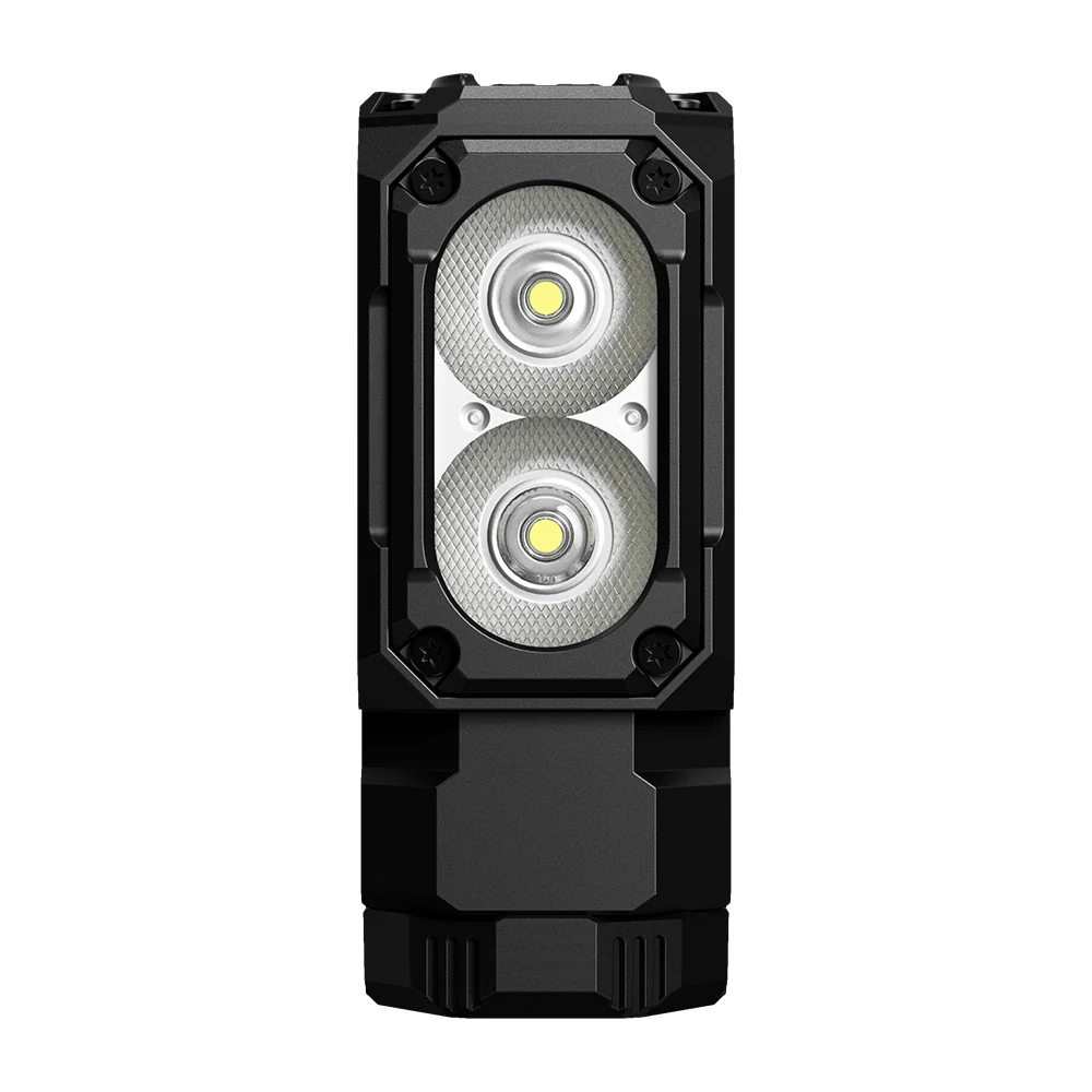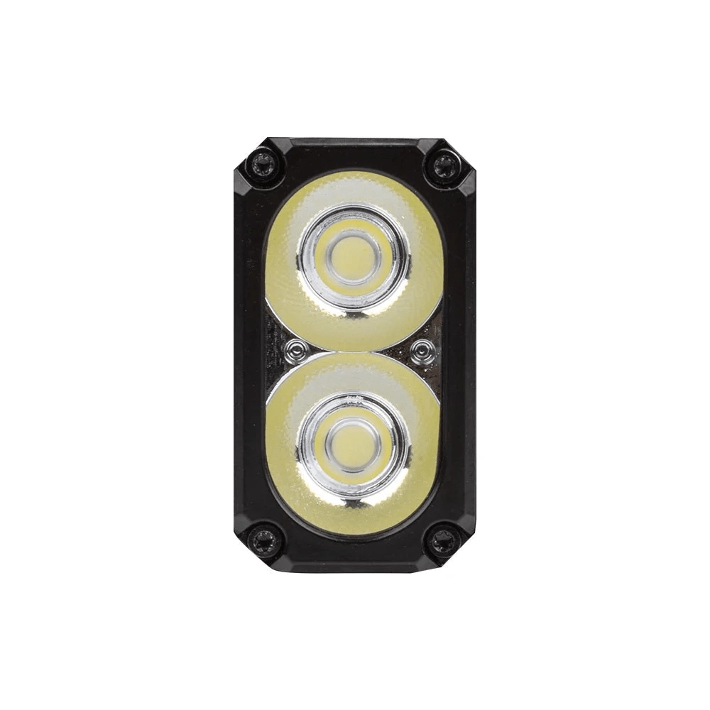 De Wuben E7 is een krachtige multifunctionele lamp voor outdoor, werkplaats en huishouden. Het duo Osram P9 LED’s biedt tot 1800 lumen met een bereik van 132 meter, terwijl de neutrale tint van 5000K kleuren natuurgetrouw weergeeft. In de laagste stand van 5 lm brandt hij tot 60 uur.