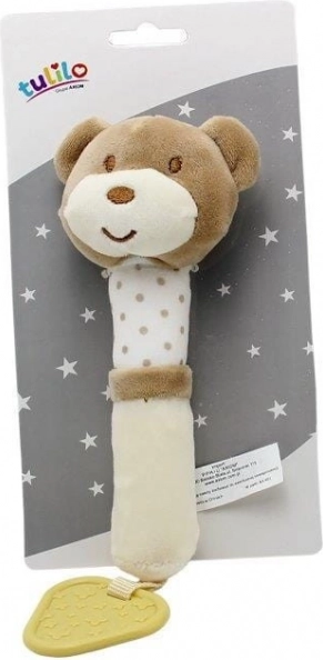 Pluchen bijtring voor baby’s. Het speeltje piept en heeft een kunststof bijtring. Afmeting van het speeltje: 24 cm. Geschikt voor kinderen vanaf 0 jaar.