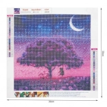 Het boommotief in roze‑paarse tinten met een halve maan zorgt voor een betoverend sprankelend effect dat mooi uitkomt met of zonder lijst. Diamantschilderen is ideaal voor mentale ontspanning, het ontwikkelen van fijne motoriek en creativiteit – geschikt voor zowel beginners als gevorderden.