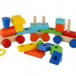 Deze houten trein ondersteunt de ontwikkeling van fijne en grove motoriek en verbetert tegelijkertijd logisch denken en verbeelding.