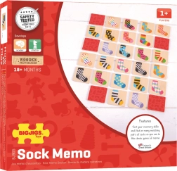 Verhoog het spelplezier met kinderen met de houten memory met sokken. Dit spel stimuleert het geheugen en bevordert concentratie en de ontwikkeling van strategische vaardigheden. Alles wat je nodig hebt is de 32 houten speelstukken met de afbeelding naar beneden leggen en beginnen met het omdraaien van twee stukken tegelijk. De moeilijkheidsgraad neemt geleidelijk toe, de speler probeert paren van sokken te vinden en nieuwe strategieën aan te leren.