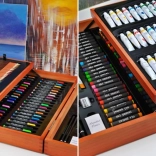 Grote tekenset met 177 stuks, ideaal voor kleine en grote kunstenaars. Dankzij de stevige houten koffer met sluitingen blijft alles op zijn plaats, wat zorgt voor een veilige transport.