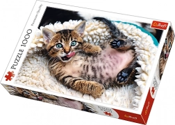 Deze puzzel van 1000 stukjes toont een vrolijk katje. Na het leggen ontstaat een afbeelding van 68x48 cm. Ze garanderen hoge kwaliteit, heldere kleuren en veilig puzzelen dankzij gecalanderd, lichtwerend papier en ecologische voedingskleurstoffen.
