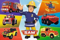 De kleurrijke illustratie met Sam en zijn reddingsvoertuigen trekt kinderen het spel in en motiveert om de puzzel af te maken.
