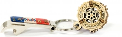 Lichte houten hanger met opening voor een sleutelhanger – draai aan het ene wiel en het andere draait vanzelf mee. Een stijlvolle accessoire voor sleutelbos of rugzak.