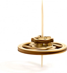 Nauwkeurig uitgebalanceerde tol die na het aanzwengelen soepel draait op een vlak oppervlak. Klein model, groot plezier.